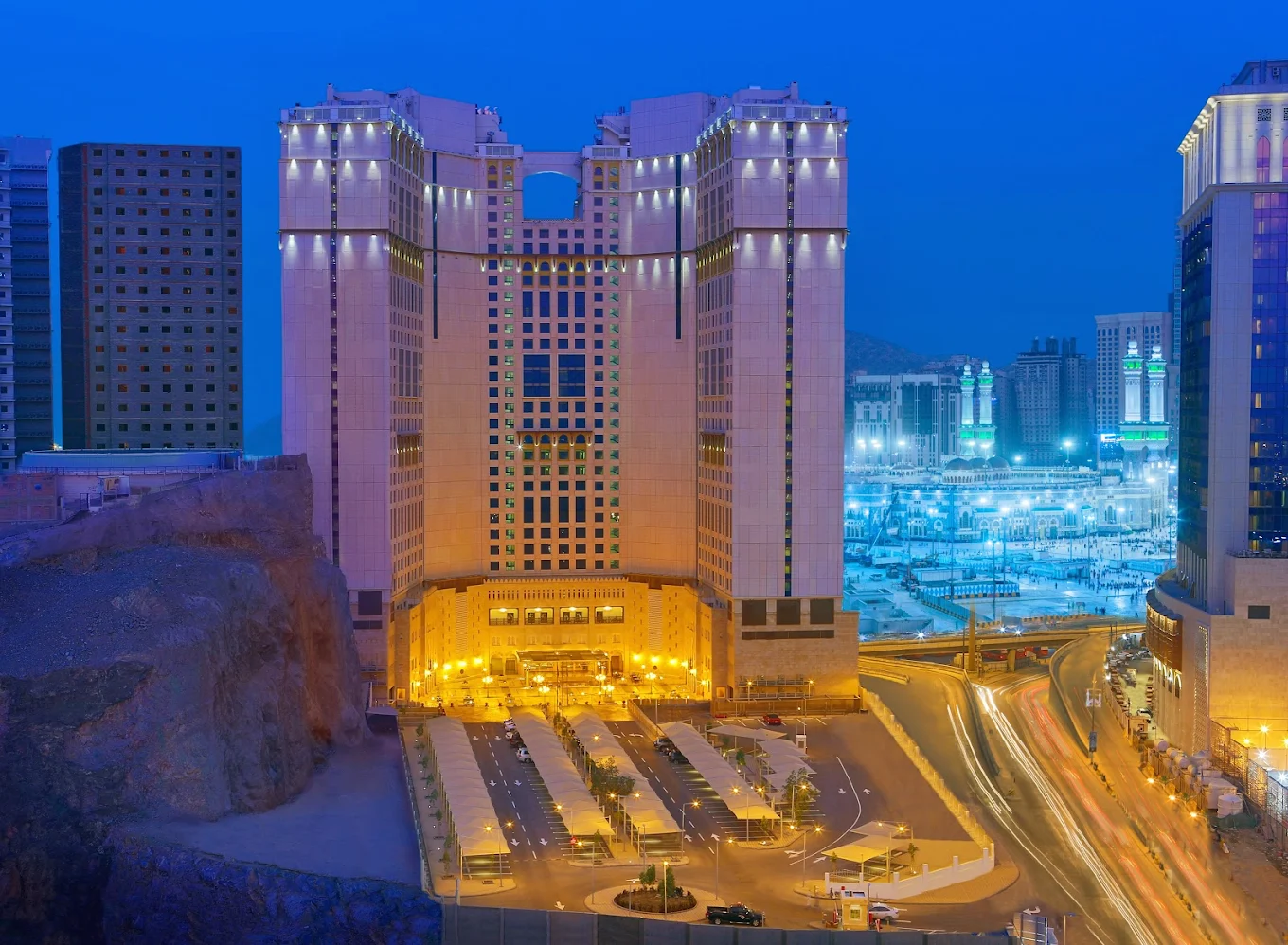 فندق أنجم مكة فندق خمس نجوم فاخر يقع في شارع أم القرى بمكة المكرمة، على مسافة خطوات قليلة من المسجد الحرام، ويوفر غرفًا وأجنحة عصرية مجهزة بكافة وسائل الراحة الحديثة، مع إطلالات مباشرة على الحرم، بالإضافة إلى مطاعم متنوعة ومرافق فندقية راقية تناسب الحجاج والمعتمرين الباحثين عن إقامة مريحة وقريبة من الصلاة.
